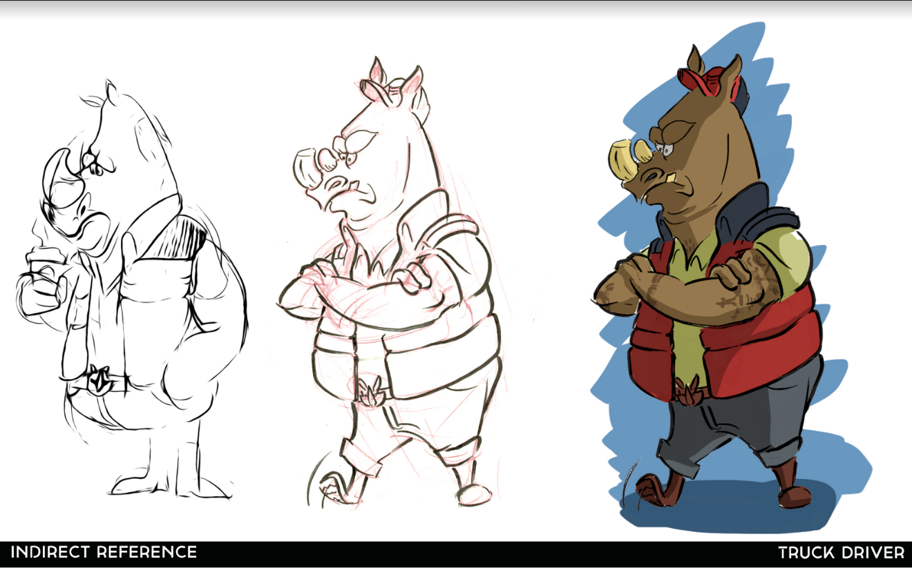 A character design assignment that consisted of selecting 3 different professions and reflecting unique shape language, personalties all under a limited amount of time.