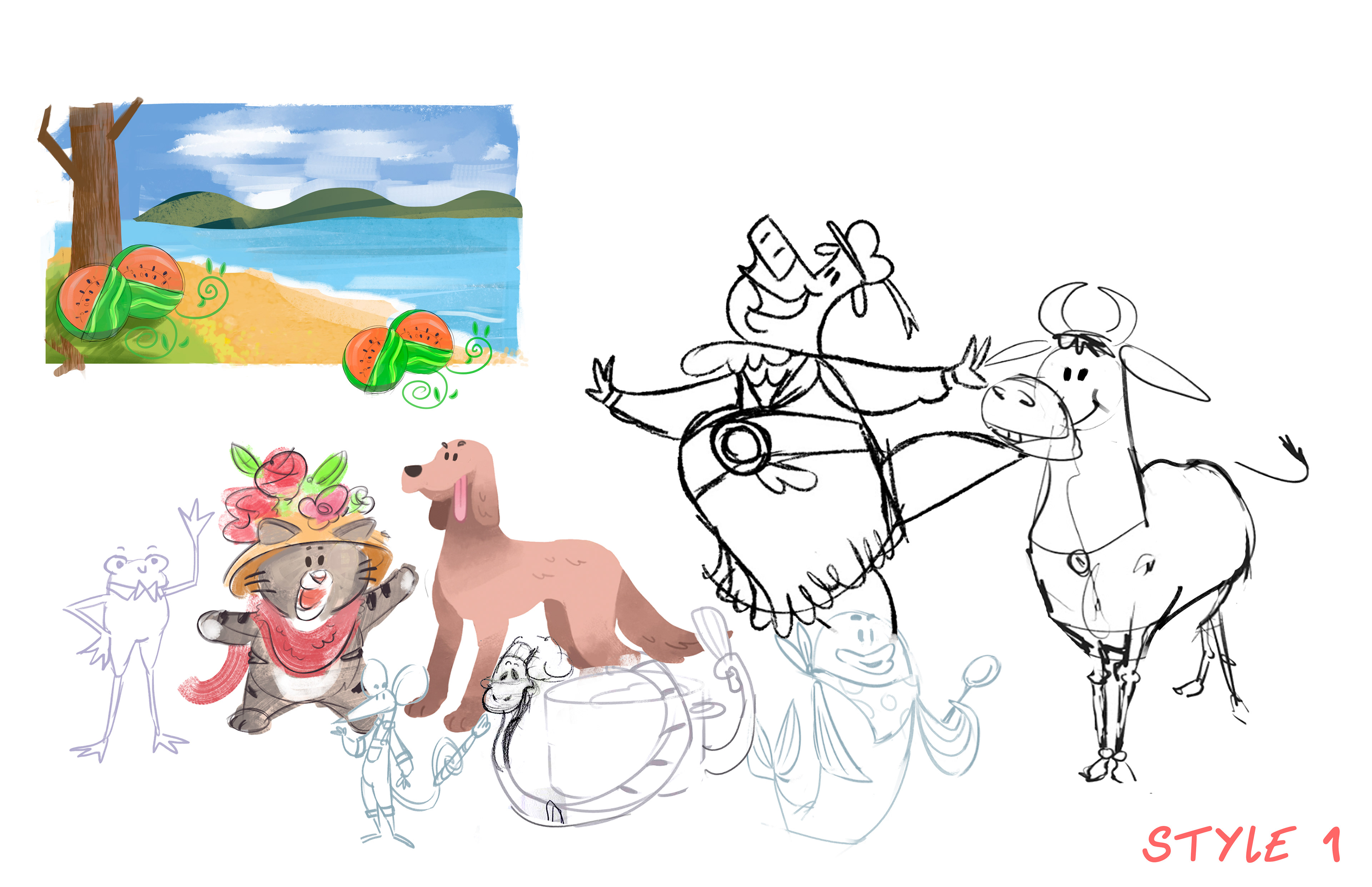 A collection of character designs, backgrounds and miscellaneous marketing material for the production of two animated music videos . The intended target group would be between the ages of 3-7